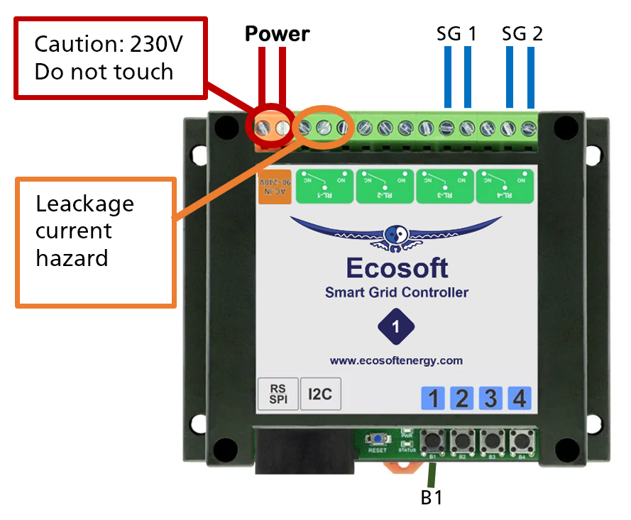 Caution: The screws of the power connectors are open and hold 230V, so take safety measures to ensure it will not be touched.